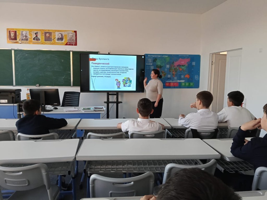 "8-сынып үшін С.М Жүнісова мектебінің педагог-психологы" Кибербуллинг" тақырыбында дәріс өткізді. Мақсаты: «Кибербуллинг» құбылысымен, оның түрлерімен, құқықтық және жалпы қорғау әдістерімен танысу, Интернетке зорлық-зомбылық жасаған жағдайда тиімді...