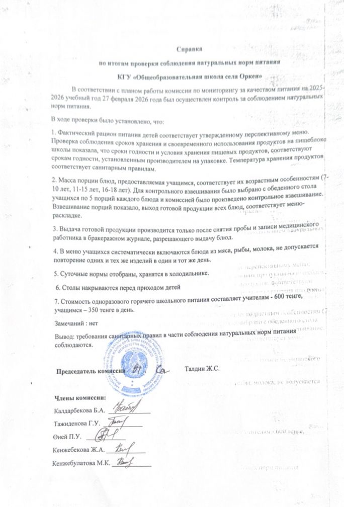 Коммунальное государственное учреждение "Общеобразовательная школа села Оркен отдела образования по Зерендинскому району управления образования Акмолинской области"